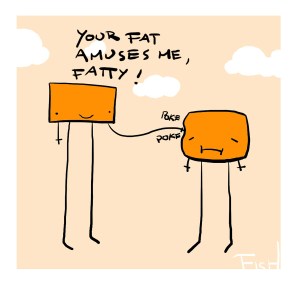 It reminded me of being a little girl, and figuring out that when your female friends said something mean about themselves, you were supposed to say something mean about yourself. I used to think of it as “I hate my thighs/I hate my butt.” As I recall, it started out as just something to say, and felt weirdly grown up, but after awhile it became a self-fulfilling prophecy.