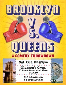 On Saturday, October, 1 at 9pm comedians Liz Simons, Selena Coppock, and Sue Funke are producing a show at Gleason’s Gym in DUMBO titled, “Brooklyn vs. Queens: A Comedy Throwdown.”